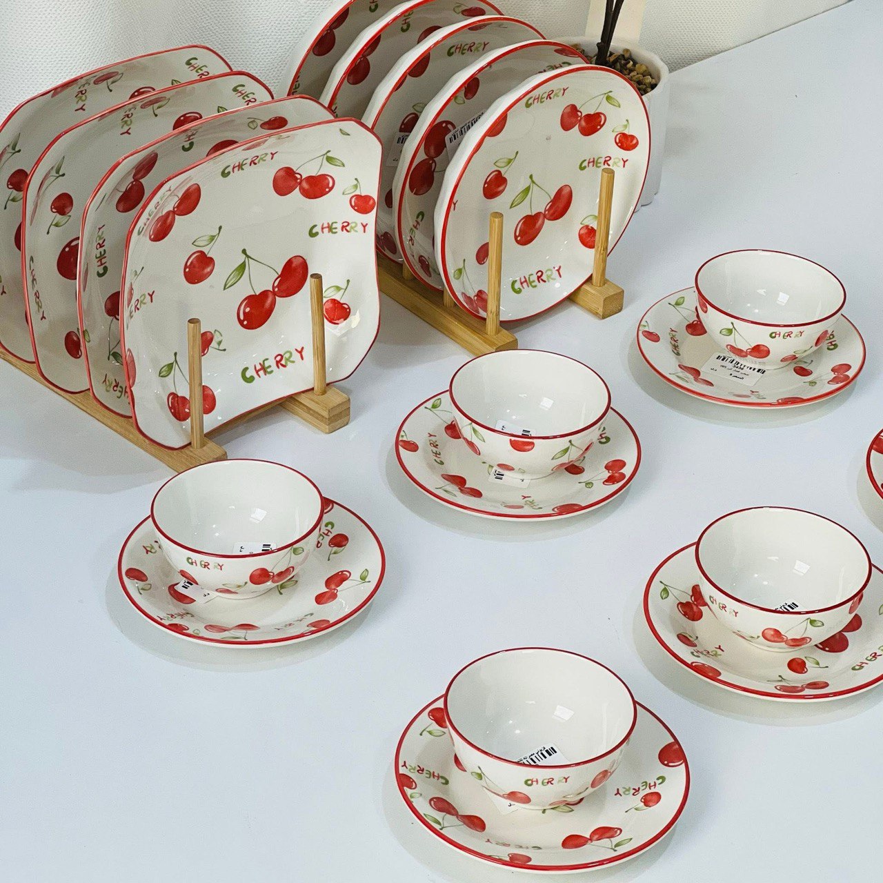 طقم أطباق وفناجين 🍒كرز 20 قطعة